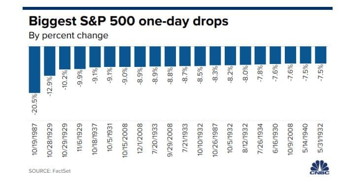 Pensate sia la prima volta che succede? Che un giorno in cui un indice perde il 17% non sia mai successo? Cambiate idea.